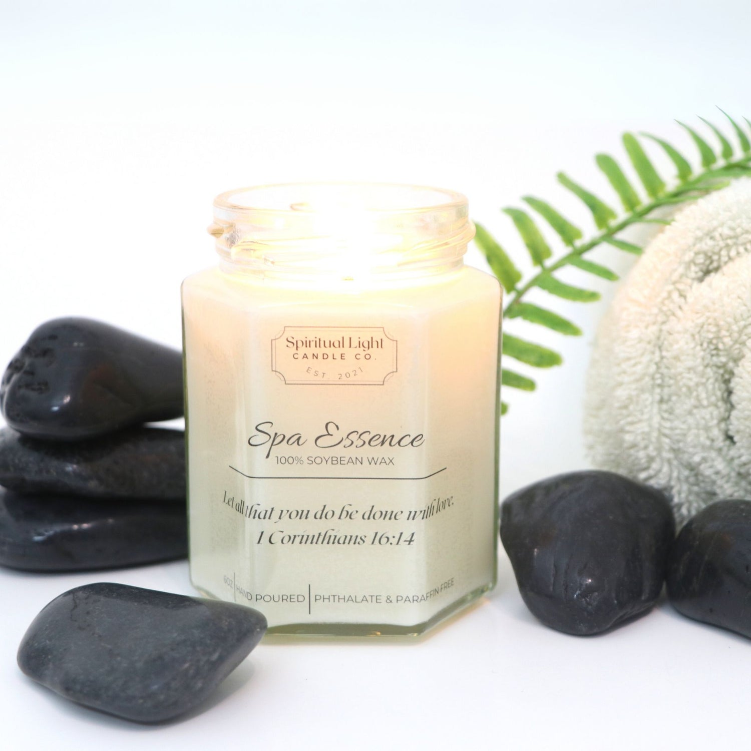 Experience the refreshing and invigorating scent of our Spa Essence candle! Made with a pure cotton wick, soy wax, and premium fragrance oils, this candle provides a clean, long-lasting burn that will fill your home with the soothing and calming aroma of lavender, refreshing mint, and revitalizing eucalyptus. Indulge in guilt-free luxury and relaxation with our eco-friendly and natural ingredients. Shop now and transform your space into a tranquil oasis!