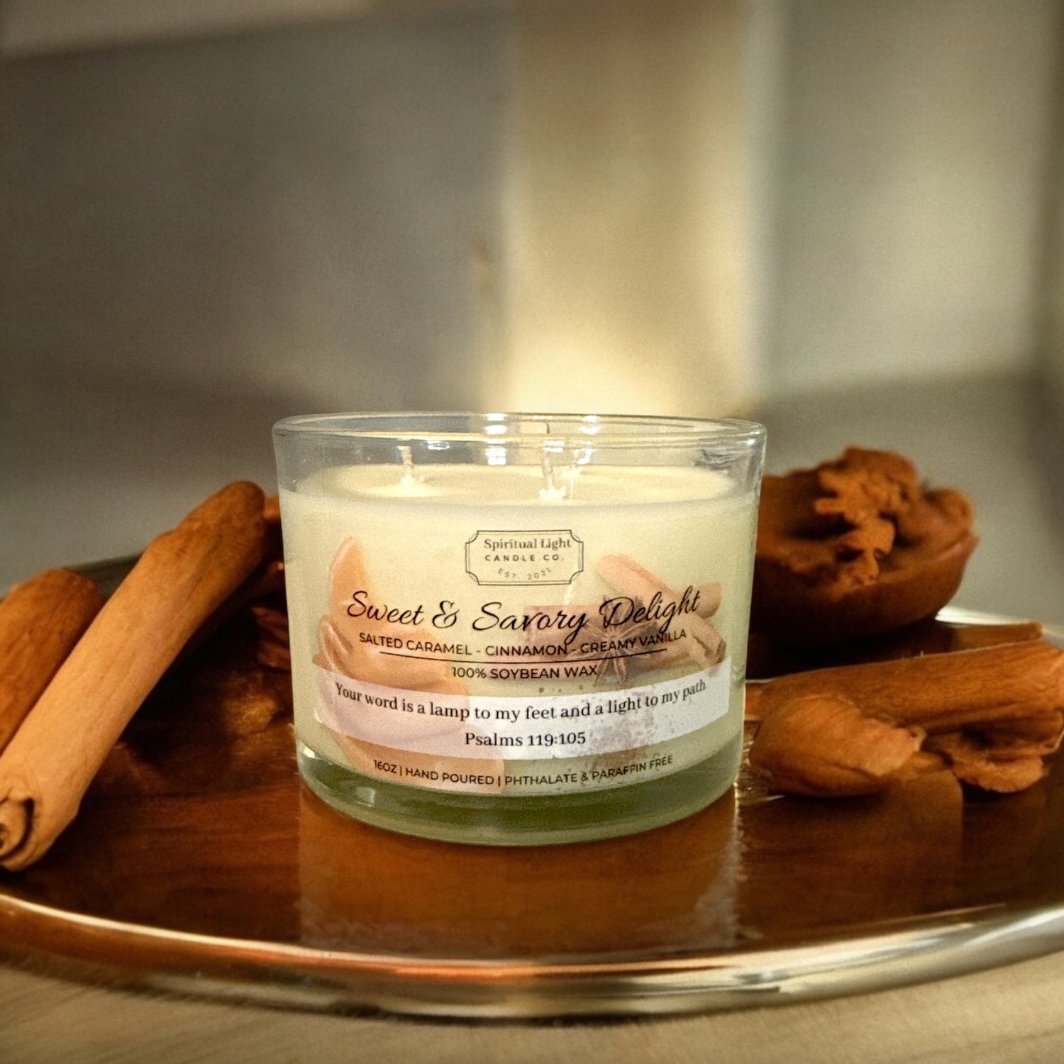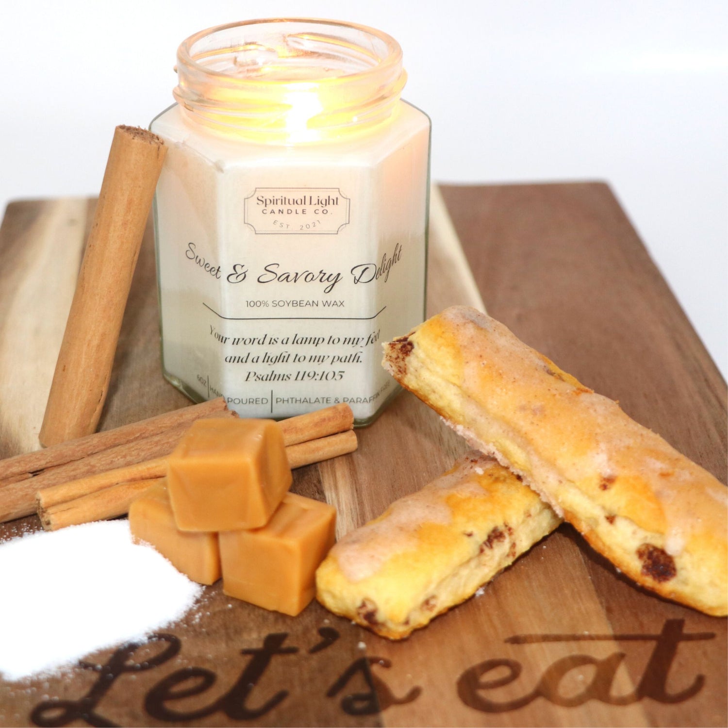 Indulge in the delicious aroma of our sweet and savory soy wax candle! Made with natural ingredients, this candle offers a long-lasting burn time that will fill your home with a delectable scent. Enjoy the eco-friendly benefits of soy wax and the satisfaction of supporting sustainable practices. Add a touch of sweetness and spice to your home decor with our irresistible scented candle. Order now and experience the joy of a beautifully scented home!